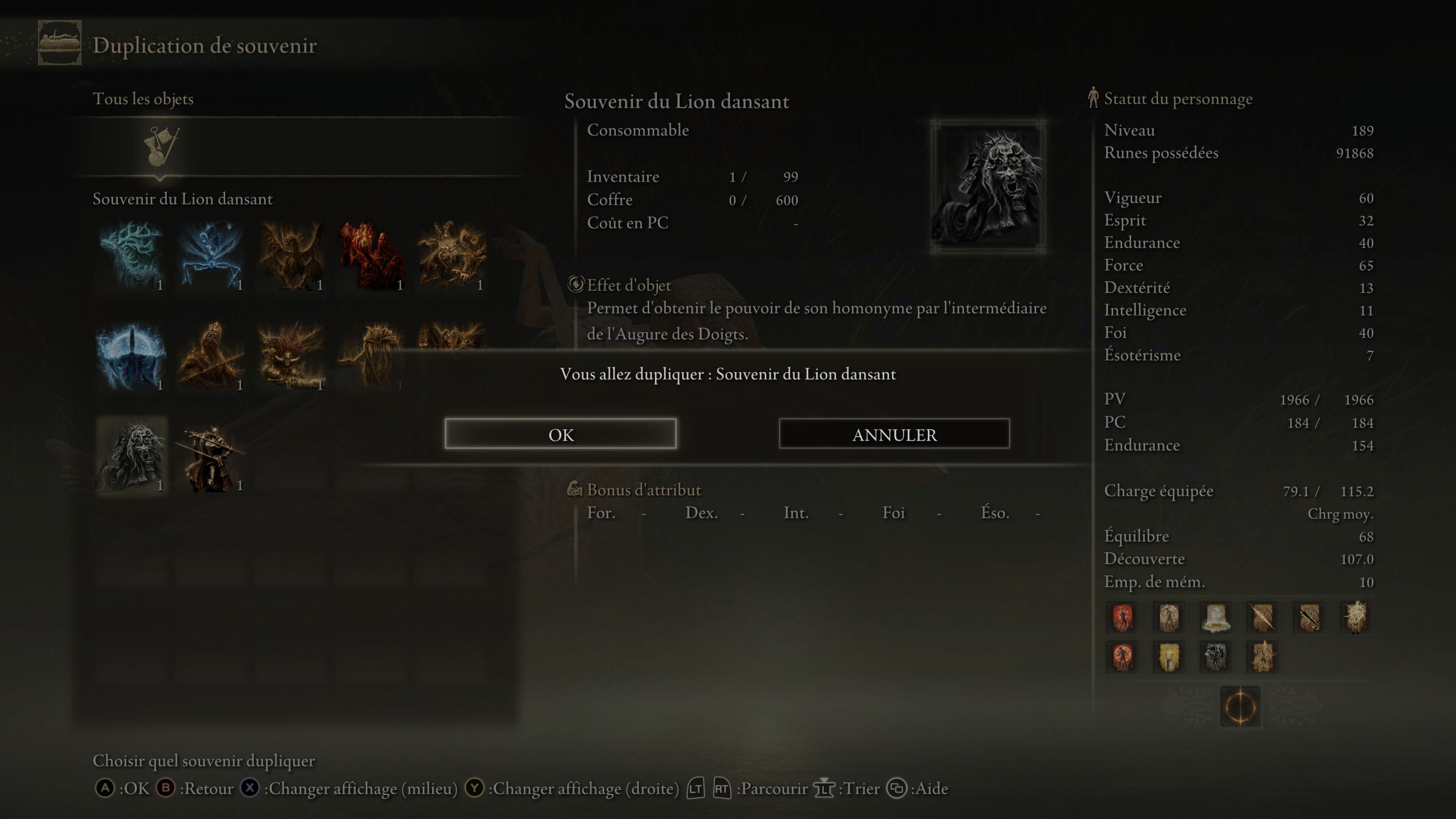 Dupliquer les souvenirs Commençons par la mauvaise nouvelle, si vous n'avez pas encore battu de seigneur de région comme ce brave Godrick, le mausolée n'a rien à vous offrir. Les souvenirs sont des objets que vous obtenez après avoir vaincu les principaux boss d'Elden Ring Elden Ring : quel souvenir devriez-vous dupliquer ? Pour commencer, il est important de dire qu'il n'y a pas de Souvenir unique dans Anneau d'Elden que chaque joueur devrait dupliquer